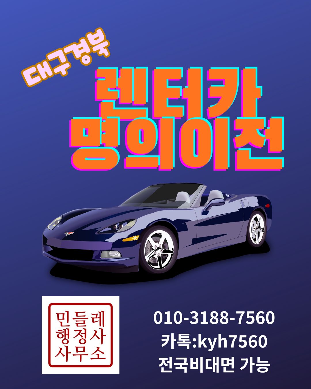 #렌트카명의이전 #대구렌트카 #경북렌트카 #호넘버교체 #자동차이전등록 #차량등록대행 #민들레행정사 #자동차명의이전 #대구자동차등록 #경북자동차등록