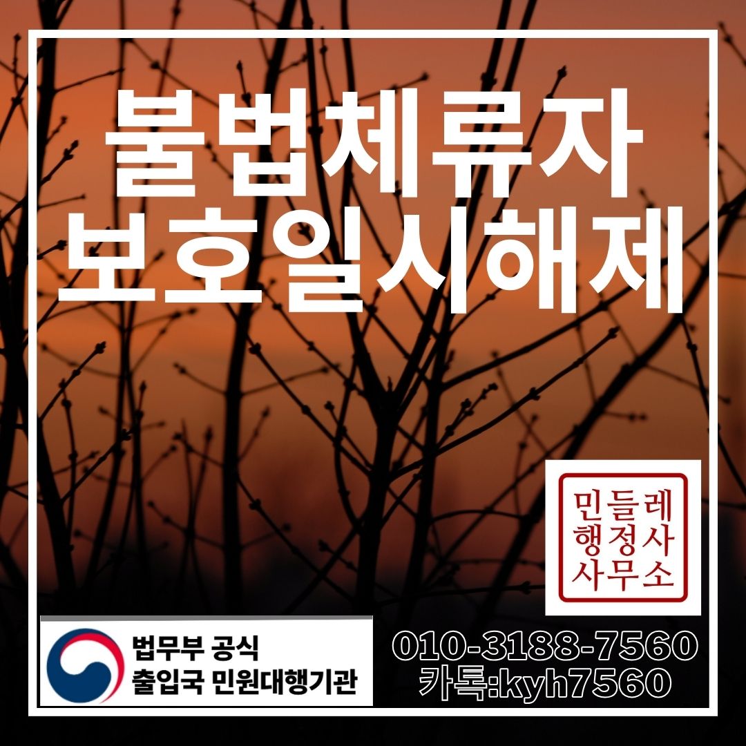 #불법체류자보호일시해제 #외국인보호소해제 #보호일시해제청구 #인도적사유 #출입국전문행정사 #민들레행정사 #보호외국인 #보증금설계 #허가결정사례 #외국인행정사