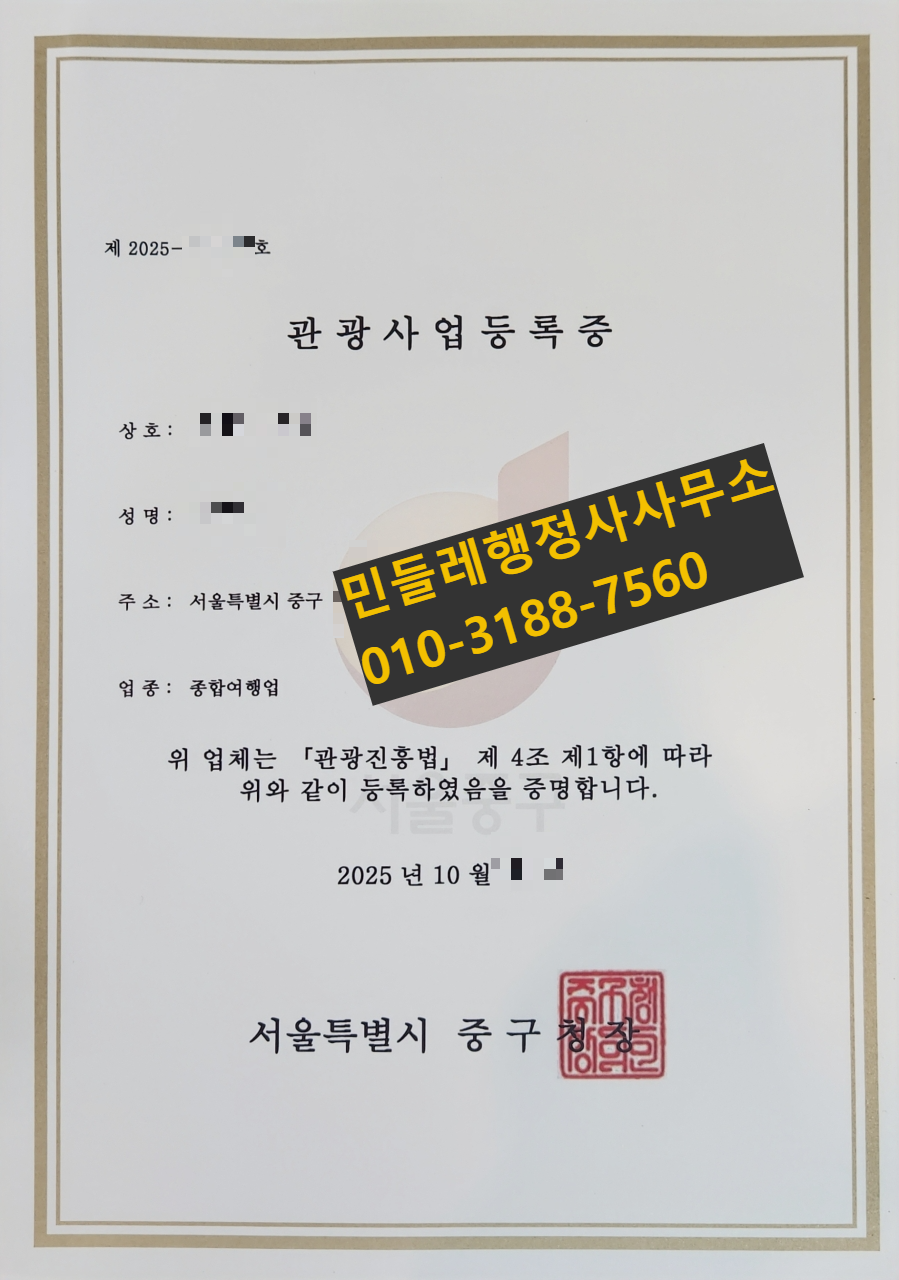 요즘 국내외 여행 수요가 급증하면서 ‘종합여행업’ 등록 문의가 폭발적으로 늘고 있습니다. 특히 서울 중구청을 포함한 서울 지역은 심사가 까다로운 편인데요, 이번 글에서는 실제로 보완 없이 7일 만에 최종 승인받은 종합여행업 법인등록 사례를 중심으로 절차, 서류, 실사 포인트까지 정리해 드리겠습니다. 관광사업 창업을 준비 중이라면 끝까지 읽어보세요!