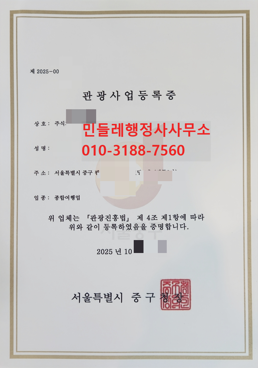 서울 중구청 종합여행업 법인등록, 급행 승인받은 실제 사례 – 민들레행정사 성공기