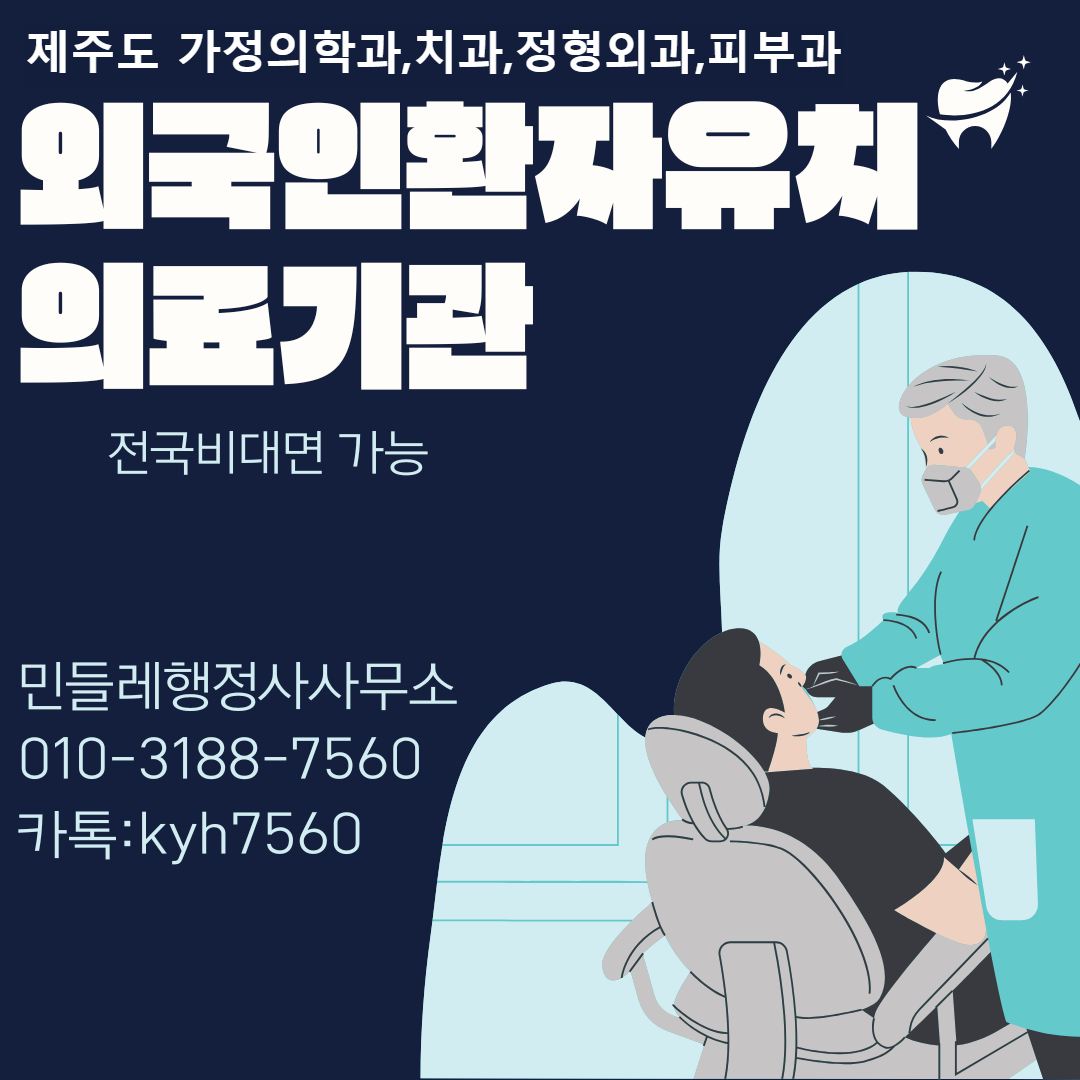 #제주도외국인환자유치기관 #의료기관등록 #외국인환자유치 #민들레행정사사무소 #의료기관서류대행 #사업운영계획서 #전문의확보 #의료배상보험 #등록대행 #외국인환자진료
