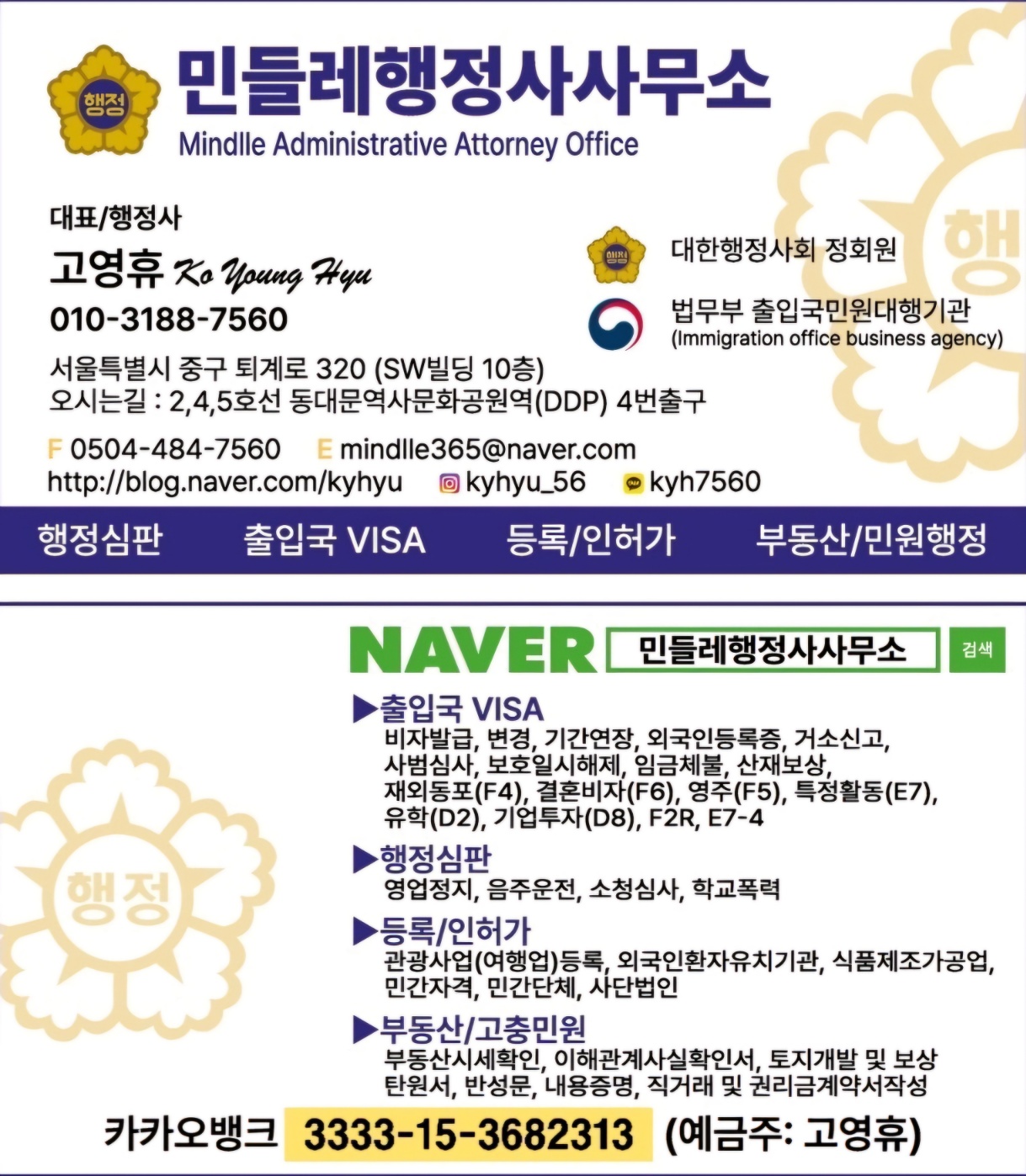 언제든지 연락주시면 즉시 출입국업무를 도와드립니다.